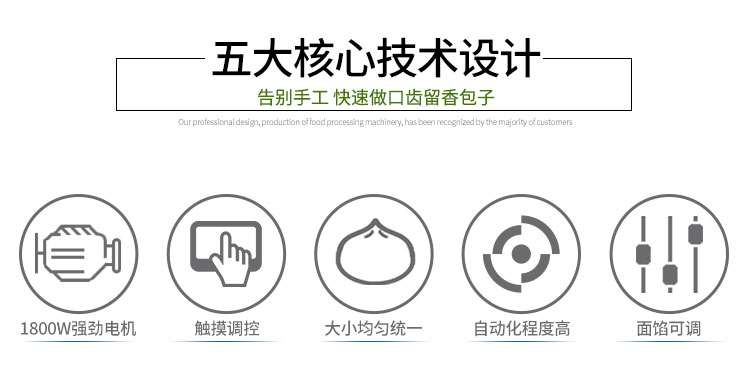 XZ-87型全自動包子機體積小重量輕,不銹鋼的外殼及食品接觸面,外觀精美,花紋更多,設計先進,生產性能穩(wěn)定精準,結構簡單,操作方便??缮a各種肉包、肉菜包、菜包、小籠包、湯包、水晶包、圓饅頭、奶黃包、豆沙包、叉燒包、南瓜餅等幾十種包餡制品。