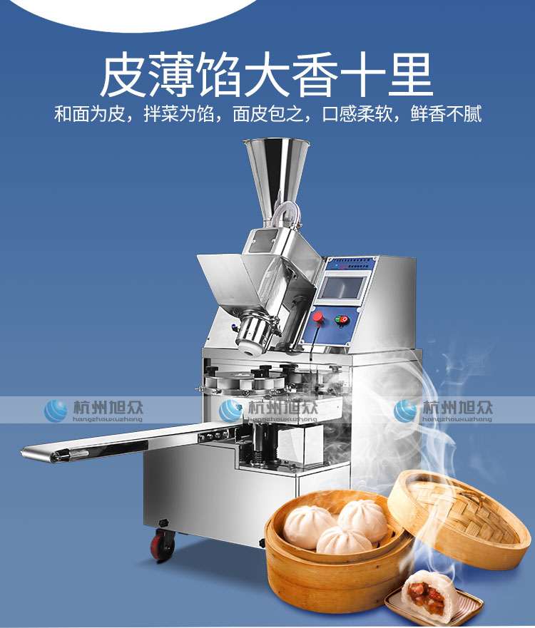 XZ-87型全自動包子機,可生產各種肉包、菜包、肉菜包、小籠包、湯包、水晶包、圓饅頭、奶黃包、豆沙包、叉燒包、南瓜餅、煎堆等十幾種包餡制品。適用于賓館、飯店、學校、機關企業(yè)食堂、饅頭或包子加工廠、早餐工程店及速凍食品廠等單位。可滿足不同客戶群體。免費提供工藝技術。免費上門培訓指導安裝。