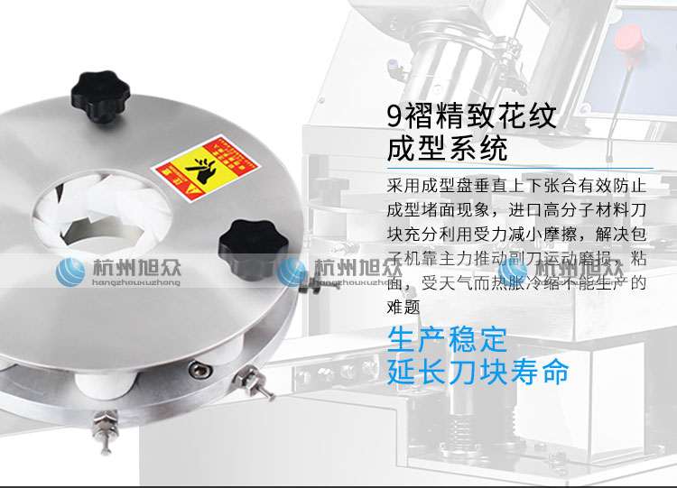 ◆包子成型系統(tǒng) :采用成型盤(pán)垂直上下移動(dòng),配合刀塊張合徹底防止以前包子機(jī)做大包子成型堵面的現(xiàn)象。9塊進(jìn)口高分子材料刀塊充分利用力學(xué)原理均衡受力減小摩擦,徹底解決了其它包子機(jī)成型刀塊靠一塊主刀推動(dòng)其它8塊副刀運(yùn)動(dòng)易磨損,刀夾面粘面,易受天氣變化而熱脹冷縮不能正常生產(chǎn)的的難題。生產(chǎn)穩(wěn)定大大延長(zhǎng)成型刀塊使用時(shí)間。