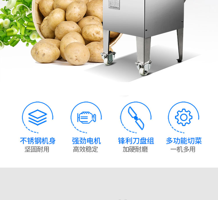 1、一機(jī)多用,可切葉菜切片、絲、段等。