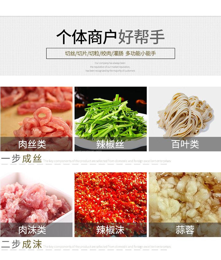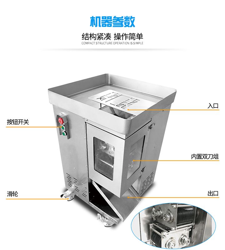 旭眾XZL一次成型切絲機(jī)是我廠精心研制出的新產(chǎn)品,該機(jī)時(shí)尚、簡潔、清洗便捷、操作安全,配有風(fēng)冷馬達(dá),適合連續(xù)作業(yè);高質(zhì)量全不銹鋼機(jī)身。適應(yīng)于酒樓、超市、工廠、學(xué)校、賓館、食堂等各種肉類加工企業(yè)和個(gè)體用戶使用。?