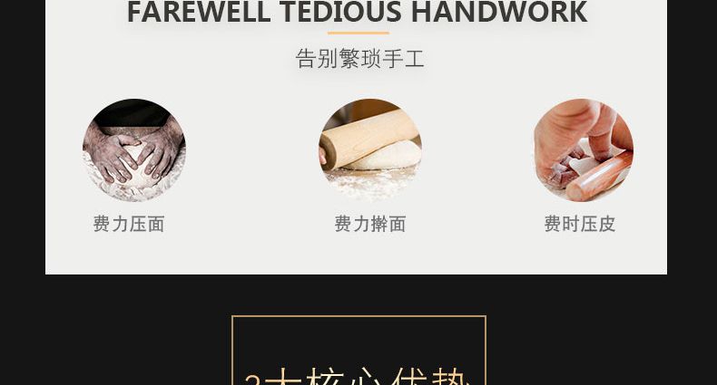 ◆壓面均勻、本機(jī)具有高功能,無(wú)邊角廢料;