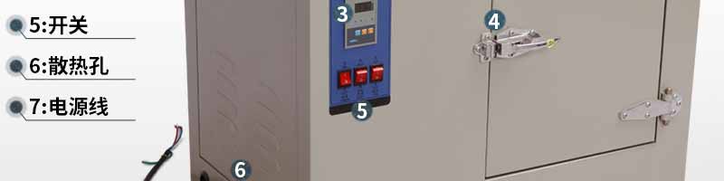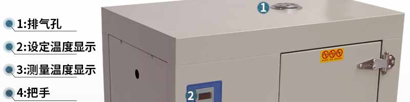 本品工作室下部裝有發(fā)熱絲,左側(cè)裝有鼓風(fēng)裝置,溫度控制儀控制溫度恒定及高低,工作時(shí)空氣由箱底進(jìn)氣孔流進(jìn),經(jīng)發(fā)熱絲加熱再經(jīng)鼓風(fēng)裝置流入工作室,再由箱頂排氣孔排出。本品工作室與外殼之間有玻璃纖維做保溫材料,外殼用鋼板制成。