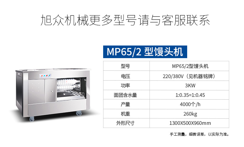 本機(jī)對(duì)面粉質(zhì)量要求不高,適用于各種工作場(chǎng)所,工作效率相當(dāng)于12-18個(gè)工人同時(shí)手工制作饅頭,真正的低投入、高收效、節(jié)省資源。