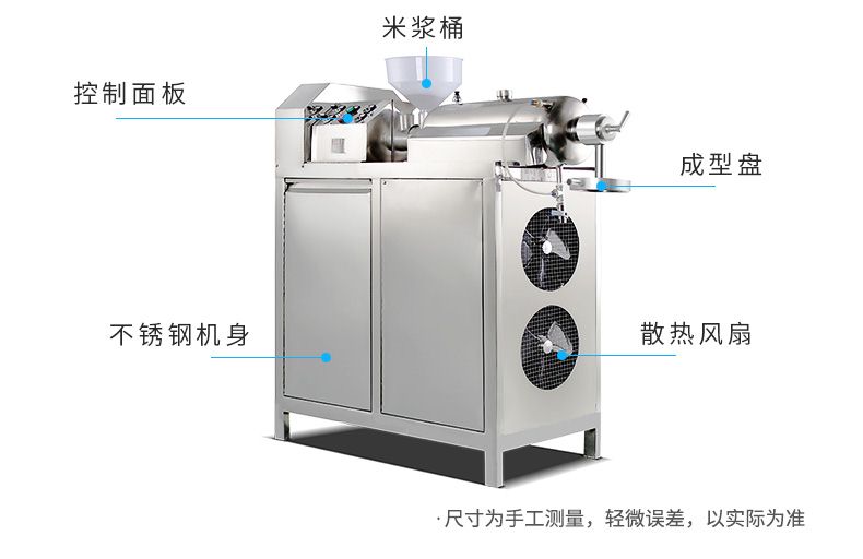 改進(jìn)型米粉、米線專用機(jī),裝有自動(dòng)溫空裝置,整個(gè)生產(chǎn)過(guò)程設(shè)備均在恒溫狀態(tài)下運(yùn)行,自動(dòng)化程度高,操作簡(jiǎn)單,l人即可生產(chǎn)??缮a(chǎn)米粉、米線、桂林米粉、過(guò)橋米線、年糕等產(chǎn)品。各種形狀都可生產(chǎn)(圓、扁),加工食品外表光滑,厚薄、寬窄、粗細(xì)均勻可調(diào),筋軟適度,有彈性,口感柔軟、味道純正。