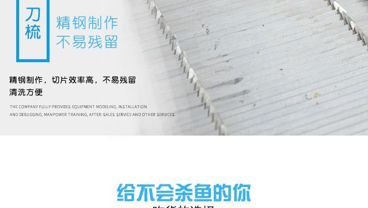 ?本機(jī)采用優(yōu)質(zhì)不銹鋼托魚(yú)板,衛(wèi)生干凈,刀片采用進(jìn)口材料;
