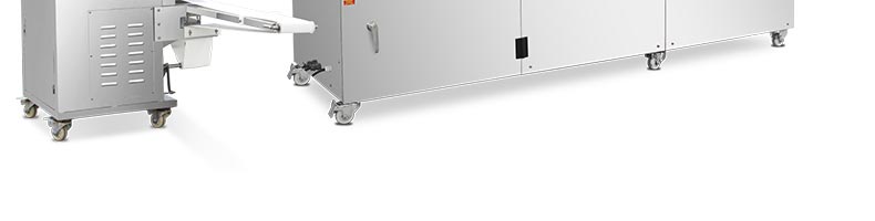 旭眾牌SZ-09C多功能三段酥餅機(jī)采用三段漸進(jìn)式打薄再將面皮壓成合適的厚度。由自動(dòng)出餡機(jī)將餡料充填至面皮上,經(jīng)卷面輪將面皮卷成圓柱狀,最后以成型刀具切割成球狀。長條狀餅胚,整個(gè)成形過程不會(huì)破壞面皮筋性,保持手工原味。