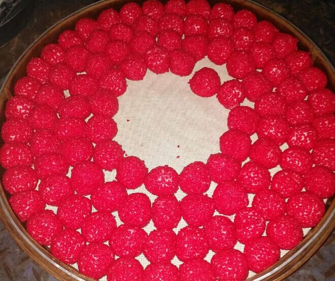 多功能湯圓機搭配裹粉機生產(chǎn)紅米粿效果